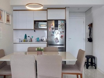 - Com 60 m² de área útil interna, perfeito para quem busca conforto e praticidade. 1 suíte e mais 1 dormitório, ambos com móveis planejados; Sala ampla para 2 ambientes integrada à varanda gourmet, ideal para receber amigos e familiares; Cozinha funcional e área de serviço completa; 1 vaga de garagem coberta e determinada.