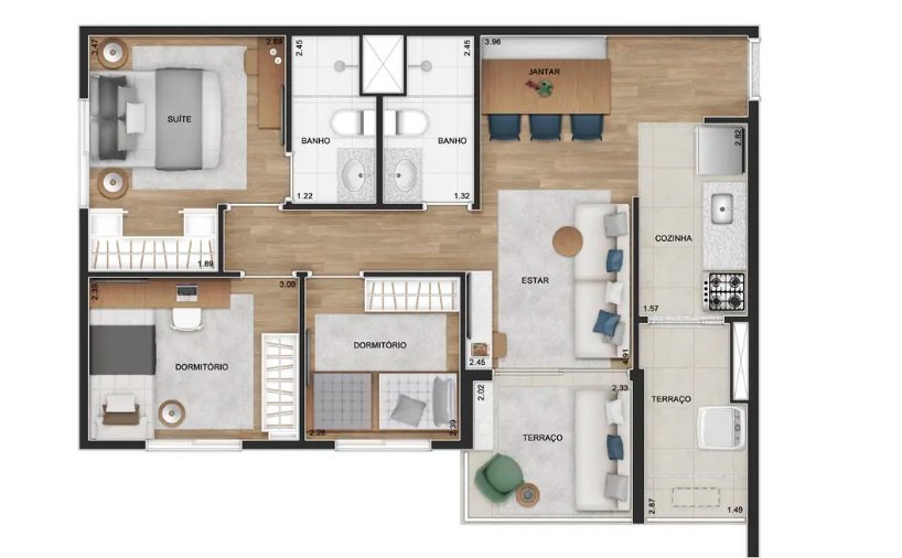 Apartamento 3 Dormitórios (1 Suíte), Sacomã, São Paulo/SP; CONDOMÍNIO TEG SACOMÃ; 66 m2 de área útil interna;