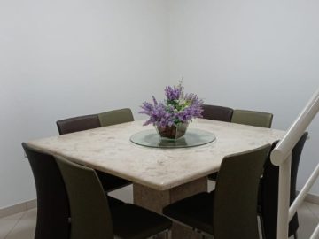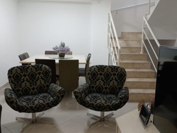 Sobrado com 3 dormitórios (1 suíte com sacada + 2 dormitórios, sendo 1 semi-suíte), 135 m² de área construída, foi recentemente reformado, está em estado novo e praticamente mobiliado, com os seguintes destaques:
