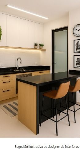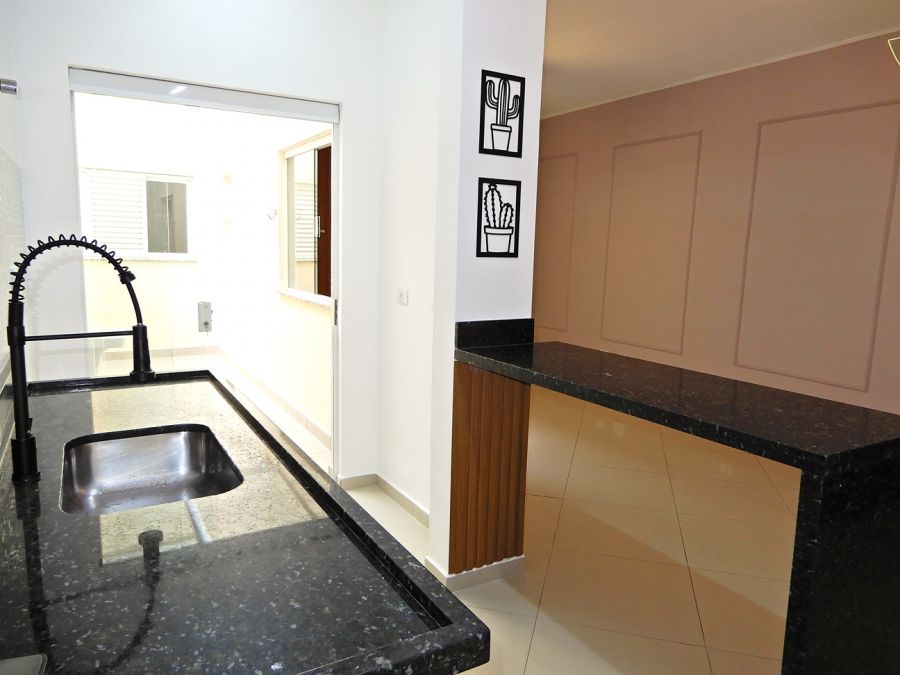 São 2 dormitórios, sendo 1 suíte com sacada e armários; Sala ampla para 2 ambientes, integrada à cozinha americana com: Pia em granito e cuba Tramontina e Preparação para máquina de lavar louças;