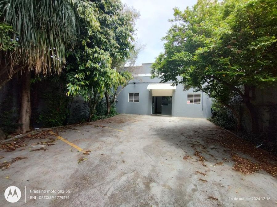 Amplo salão principal conjugado com mais 6 Salas, 4 banheiros sendo 3 femininos e 1 masculino, copa/cozinha, área para almoxarife/depósito, 5 vagas demarcadas.