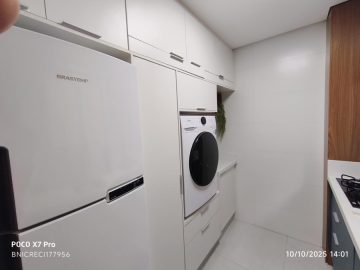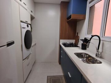 São 53,64 m2 de área útil interna; Ampla Sala para 2 ambientes, Varanda, Banheiro social; cozinha, área de serviço e 2 vagas de garagem cobertas e determinadas;