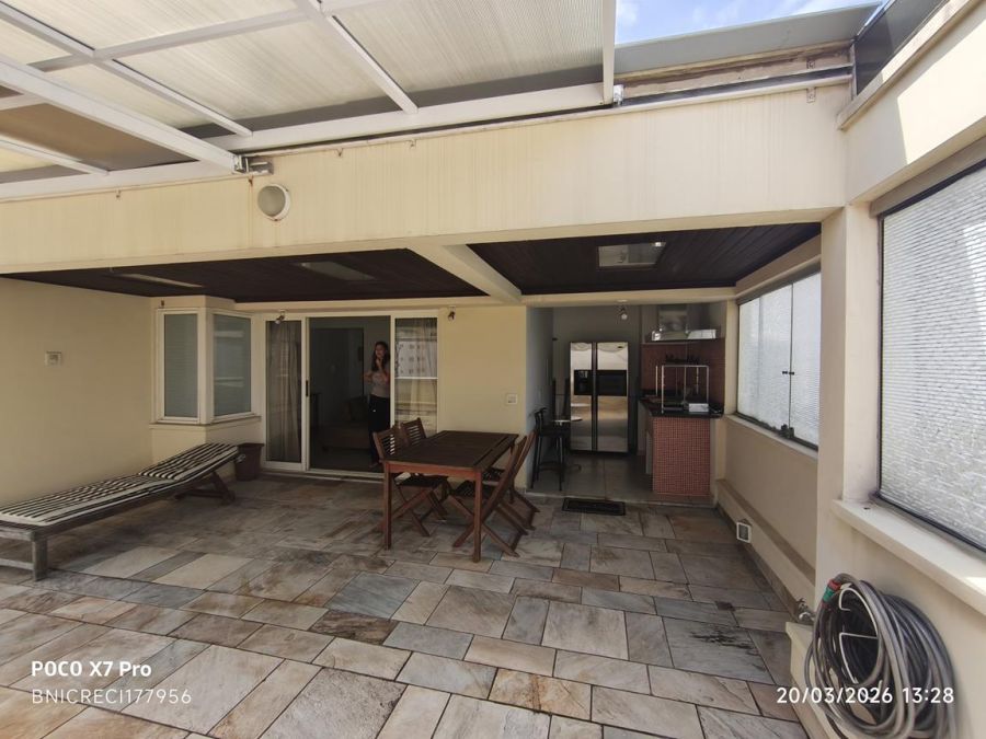 No segundo Piso (cobertura) há um espaçoso terraço coberto com telhado retrátil; Área gourmet equipada com churrasqueira; Geladeira, mesa de aluminio com 2 cadeiras, mesa de madeira com 4 cadeiras e espreguiçadeira;